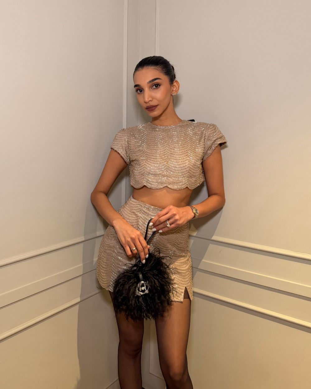 Beaded Set With Velvet Bow