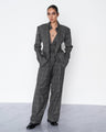 3 piece set. Structured blazer paired with a tailored shirt with power shoulders and tailored pants.